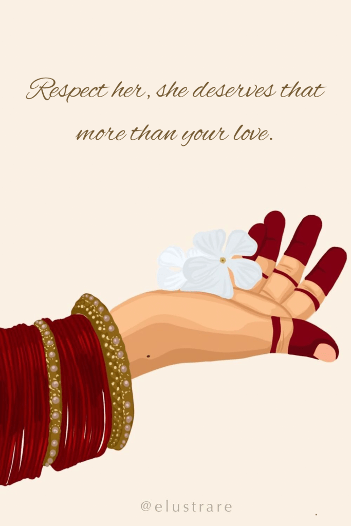 Respect isn’t just about not harming women, it’s about actively supporting them, listening to them, and treating them as equals in every sense of the word. It’s about fostering an environment where women don’t have to constantly fight for their rights because those rights are and should be inherently respected.